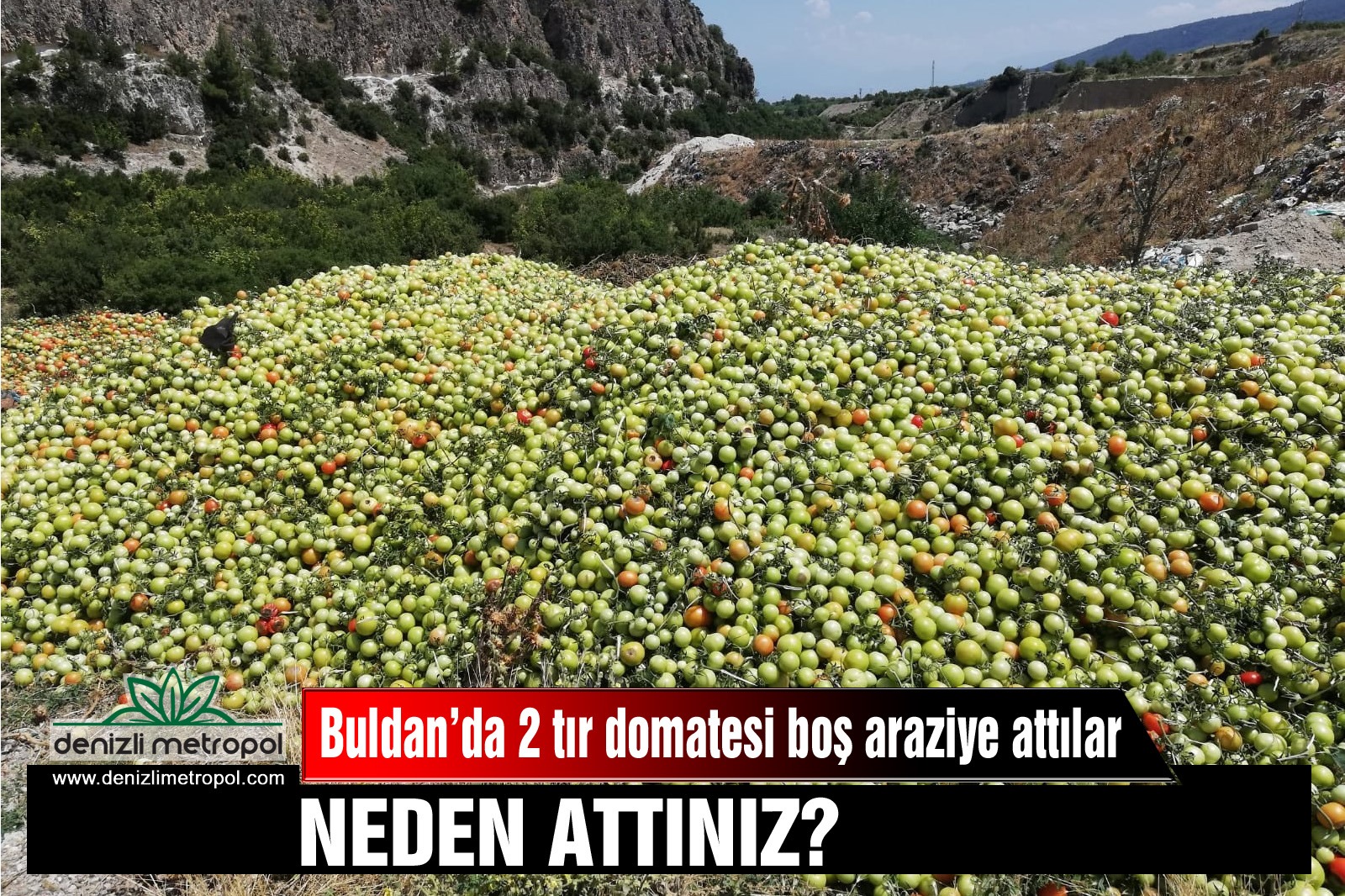 Olay, Buldan ilçesi Meyere yolu üzerinde meydana geldi. Edinilen bilgilere göre; yol üzerinde bulunan boş araziye kimliği henüz belirlenemeyen kişiler tarafından iki tır dolusu domates döküldü. Olayı gören çevredekiler, durumu polis ekiplerine ve Buldan Belediyesi'ne bildirdi. Bölgeye gelen ekipler olay yerinde incelemelerde bulundu.