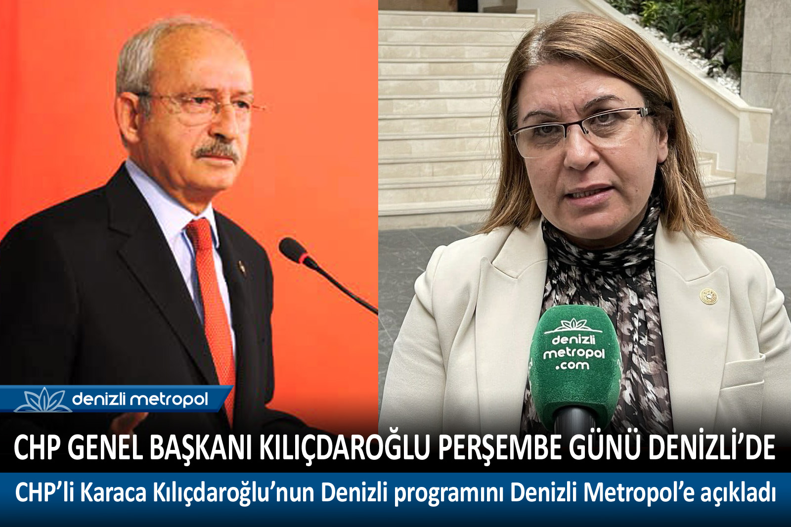 Cumhuriyet Halk Partisi Genel Başkanı Kemal Kılıçdaroğlu 24 Şubat Perşembe Günü Denizli’ye geliyor. Kılıçdaroğlu’nu Denizli’de yoğun bir gündem bekliyor. CHP Genel Başkan Yardımcısı Denizli Milletvekili Gülizar Biçer Karaca, Kılıçdaroğlu’nun Denizli programını Denizli Metropol’e özel açıkladı.