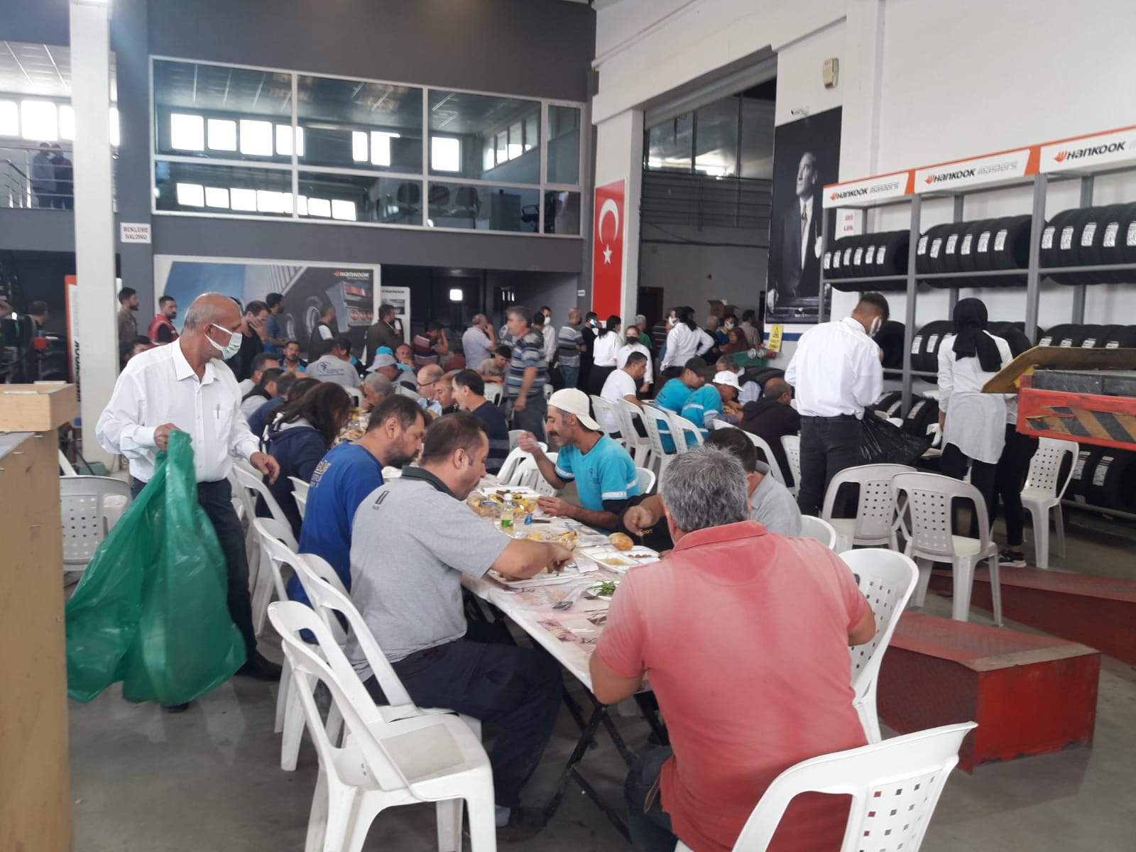 Delka Otomotiv Yönetim Kurulu Başkan Yardımcısı Ethem Kavak ise “Bayilerimizle eş, dost ve sanayi çalışanları ile birlikteyiz. 2 bin 500 kişilik yemeğimize ilgi büyük. Gelenlerden Allah Razı olsun. Geleneksel hale gelen hayır yemeğimizi gelecek yılda yapacağız” diye konuştu.