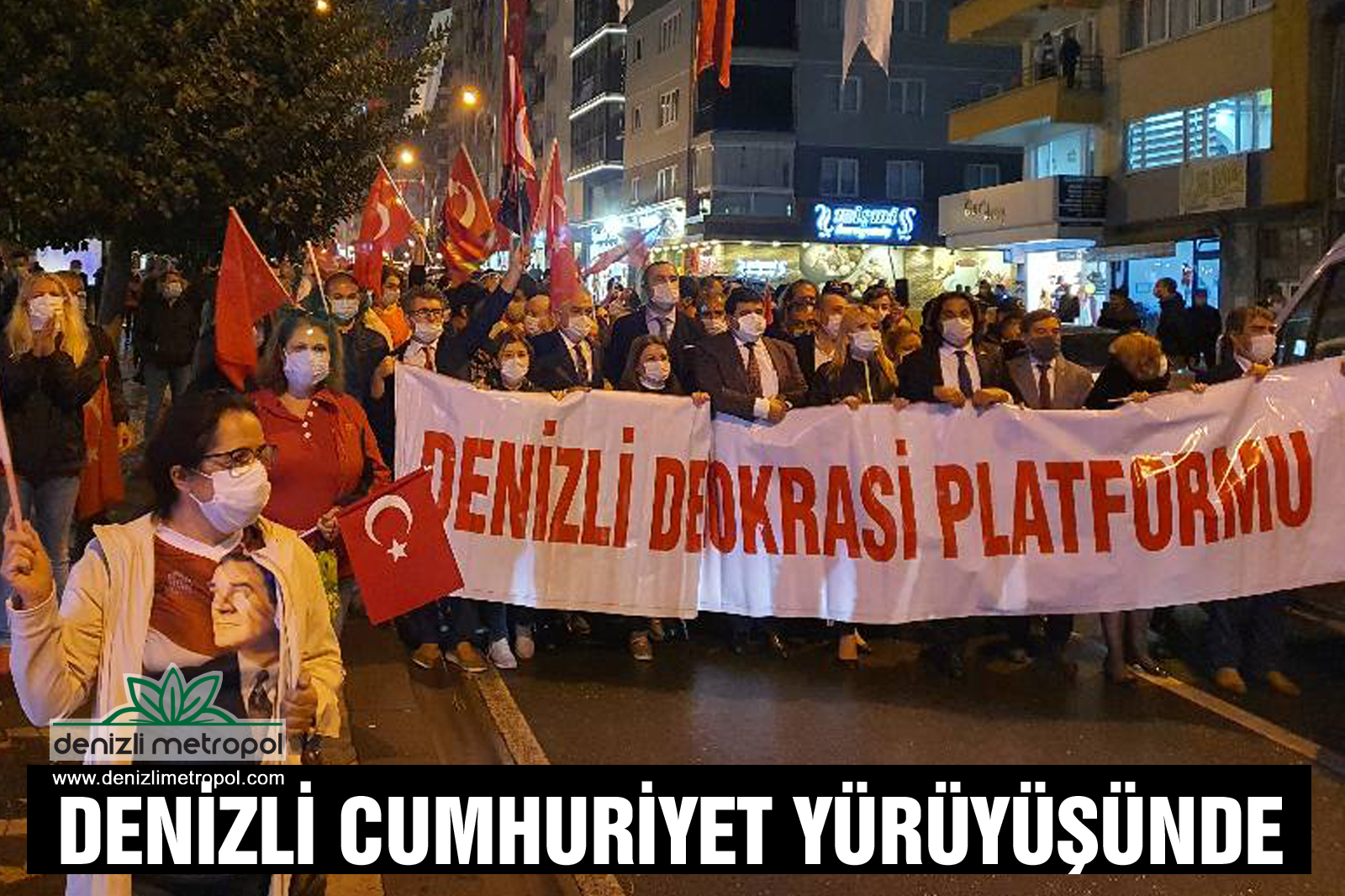 Cumhuriyet Bayramı’nın 97.yıldönümü dolayısıyla Denizlililerin geleneksel hale getirdiği yürüyüş her yıl olduğu gibi bu yılda yapıldı. Yürüyüş, Atatürk Stadyumu önünden başlayarak Çınar Meydanı’nda son buldu. Yürüyüşe, CHP Genel Başkan Yardımcısı Gülizar Biçer Karaca, CHP Denizli Milletvekili Teoman Sancar, CHP Denizli İl Başkanı Bülent Nuri Çavuşoğlu Denizli Demokrasi Platformu Dönem Sözcüsü ve Denizli Baro Başkanı Müjdat İlhan, Denizli’deki sivil toplum kuruluşu temsilcileri ile vatandaşlar katıldı.