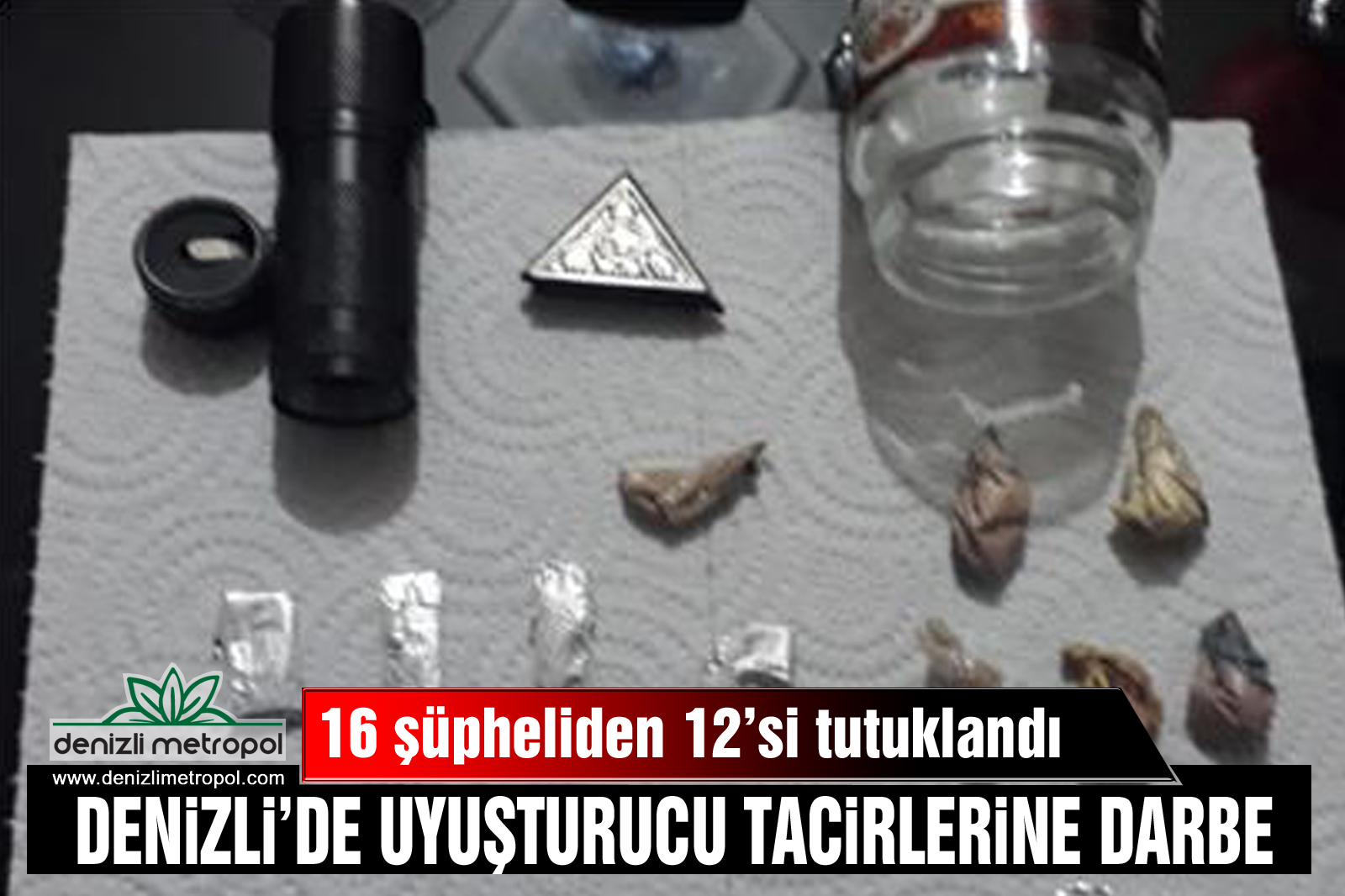 Denizli'de Narkotik Suçlarla Mücadele Şube ekipleri çevre illerden kente uyuşturucu sevkiyatı gerçekleştiren şahıslara yönelik operasyon düzenledi. Ekipler uyuşturucu ticareti yapan 16 şüpheliyi tespit ederek takibe aldı. Takibin ardından düzenlenen operasyonda 16 şüpheli gözaltına alınırken yapılan aramalarda 177 gram eroin, 10 gram metamfetamin, hassas terazi, ruhsatsız tabanca, ruhsatsız tüfek, uyuşturucu madde satışından sağlandığı değerlendirilen 14 bin 215 TL ele geçirildi. Emniyetteki işlemlerinin ardından adliyeye sevk edilen şüphelilerin 12'si çıkarıldığı mahkemece tutuklanarak ceza evine gönderildi.