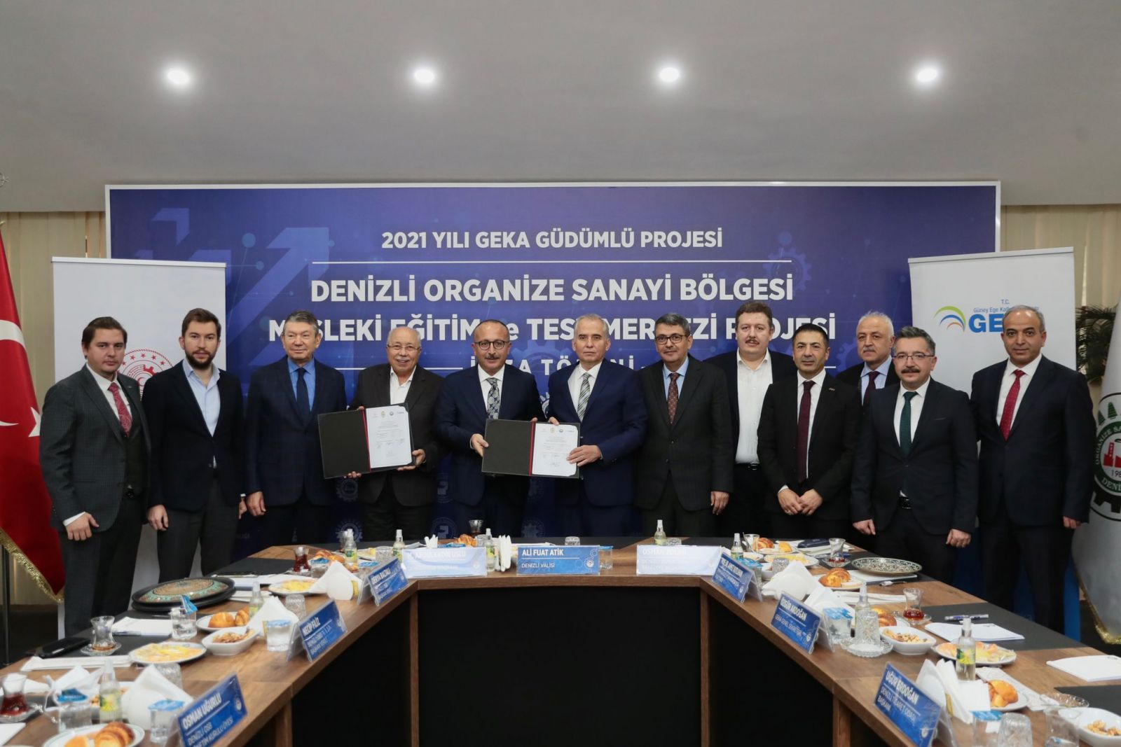Sanayi ve Teknoloji Bakanlığı koordinasyonunda faaliyetlerini yürüten GEKA’nın “2021 Yılı Güdümlü Proje Desteği” kapsamında destek almaya hak kazanan ve Denizli Organize Sanayi Bölgesi Müdürlüğü tarafından yürütülecek olan “Denizli Mesleki Eğitim ve Test Merkezi” projesinin sözleşme imza töreni gerçekleştirildi.