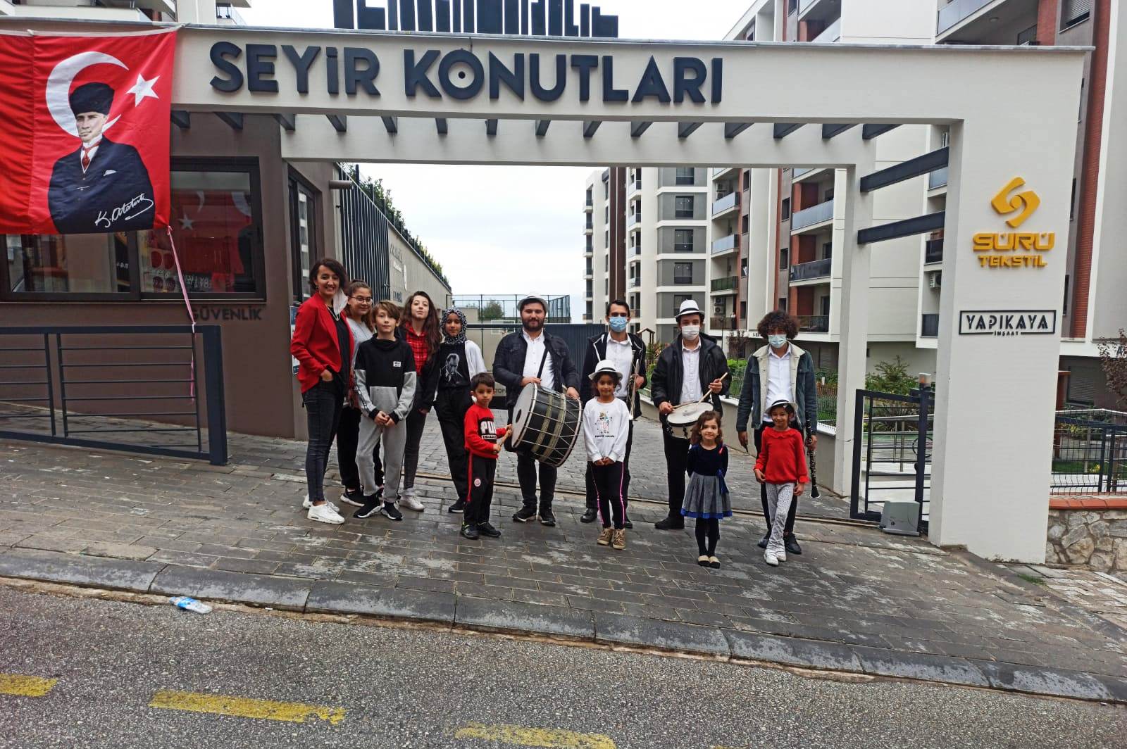 Kentte pandemi nedeniyle Cumhuriyet Bayramı Kutlamaları genelde sade ve az katılımlı yapılırken, Denizli’de 15 sitenin yönetim organizasyonunu sürdüren Fibart Yönetim, Arya Bando Ekibi ile farklı bir etkinliğe imza attı.