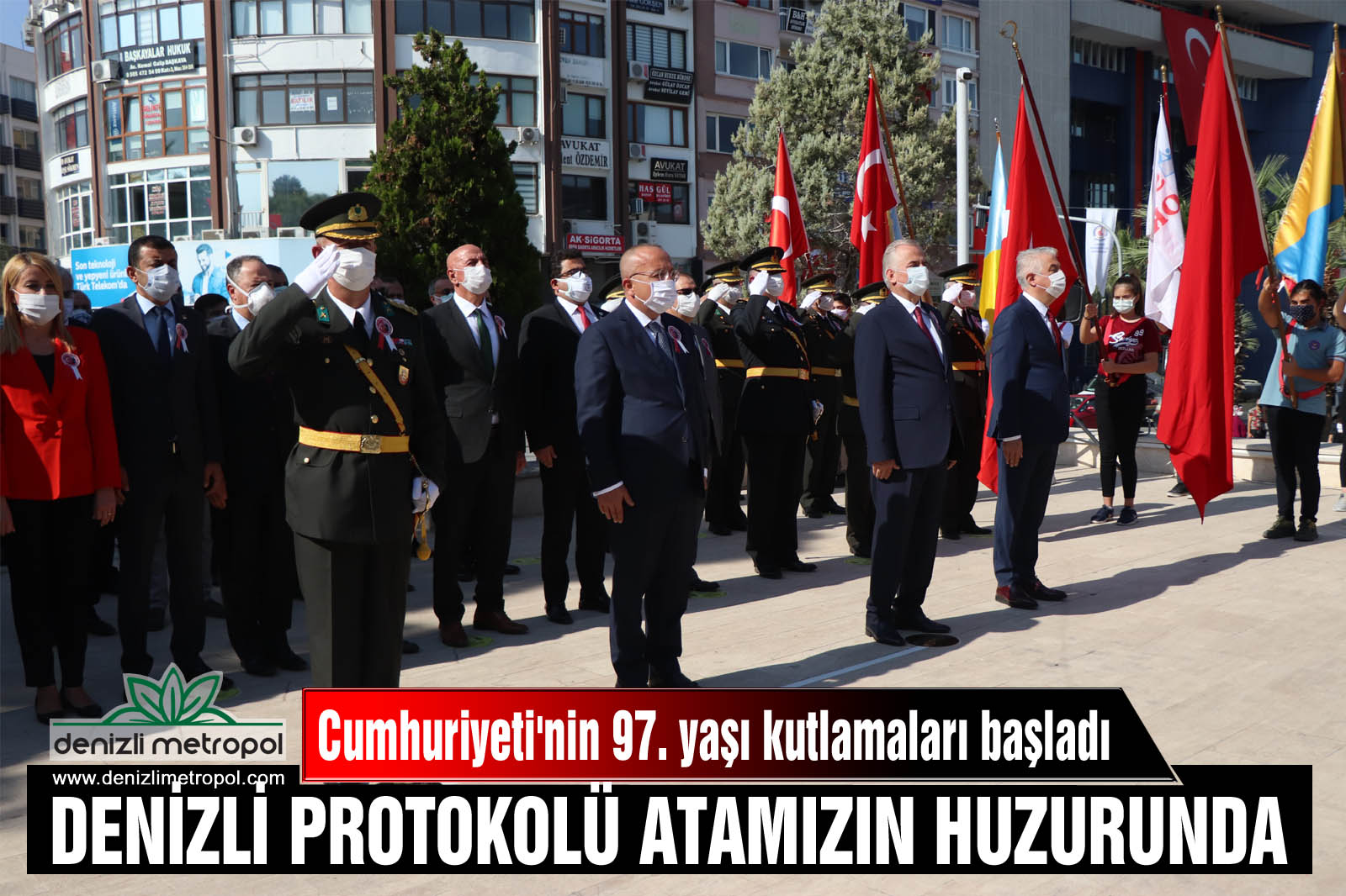 Türkiye Cumhuriyeti'nin 97’inci kuruluş yıl dönümünü kutlamaları çerçevesinde Denizli’de Atatürk Anıtı'na çelenk sunma töreni yapıldı.