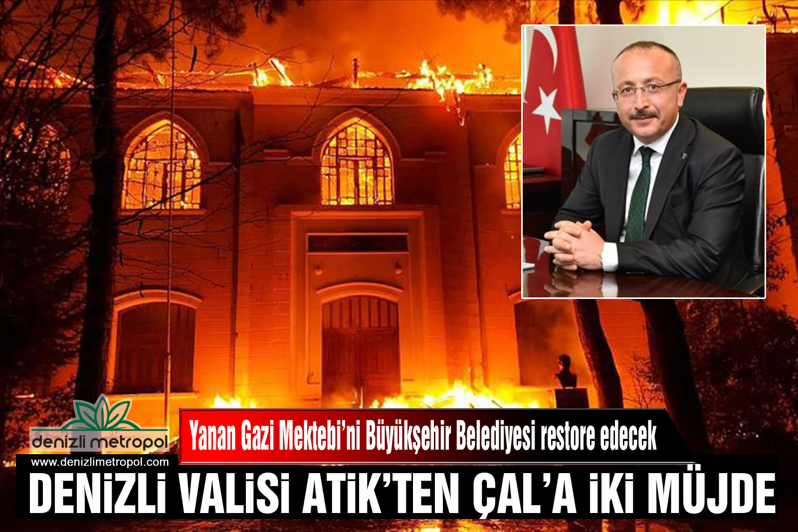 Denizli Valisi Ali Fuat Atik, Çal ilçesinde geçen yıl yanan tarihi Gazi Mektebi'ni Büyükşehir Belediyesi'nin katkısıyla restore edileceğini, depreme dayanıksız olduğu için 2018'de yıkılan Çal Mesleki ve Teknik Anadolu Lisesi yapımının kısa süre içinde başlayacağını müjdeledi