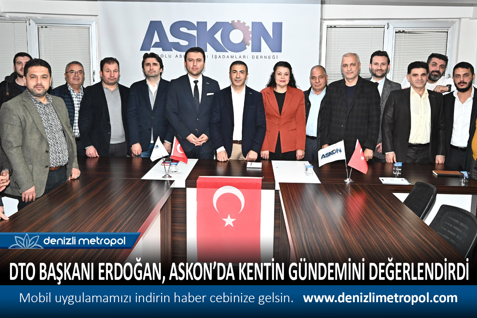 Denizli İşadamları Tüccarlar ve Sanayiciler Platformu Dönem Sözcüsü ve Denizli Ticaret Odası (DTO) Başkanı Uğur Erdoğan, Tüm Sanayici ve İş Adamları Derneği’nin (TÜMSİAD) ardından Anadolu Aslanları İş Adamları Derneği’nin (ASKON) organizasyonuna katıldı. ASKON Denizli Şubesi üyelerini dinledi; kent gündemindeki konularla ilgili görüşlerini dile getirdi.