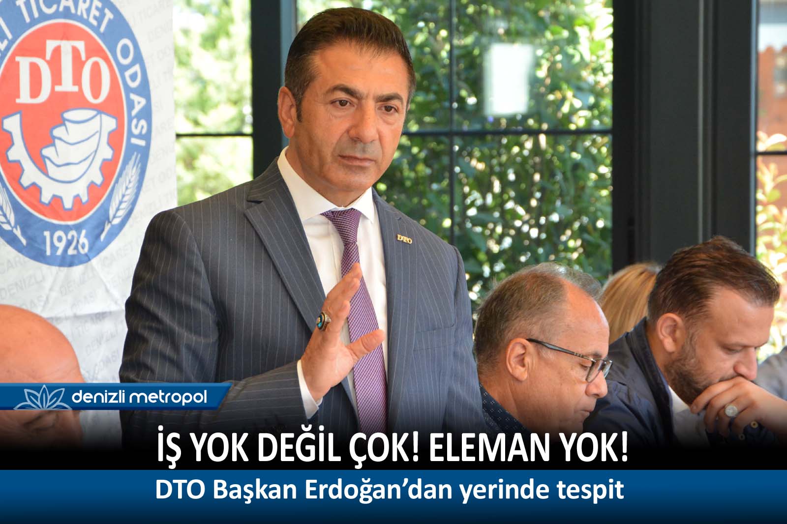 Meslek Komitelerine yönelik ikinci toplantısında hem üyelerine hem de hemşehrilerine seslenen Denizli Ticaret Odası (DTO) Başkanı Uğur Erdoğan, “İŞKUR verilerine göre, iş yok değil çok! Eleman yok! İşletmelerimiz çalıştıracak personel arıyor. İŞKUR, kendisine başvuran herkesi kendisinden elaman talep eden iş yerleriyle irtibatlandırıyor. Ancak, ne yazık ki özellikle belli bir yaş grubu vatandaşımız bu işlerde çalışmak istemiyor” dedi.