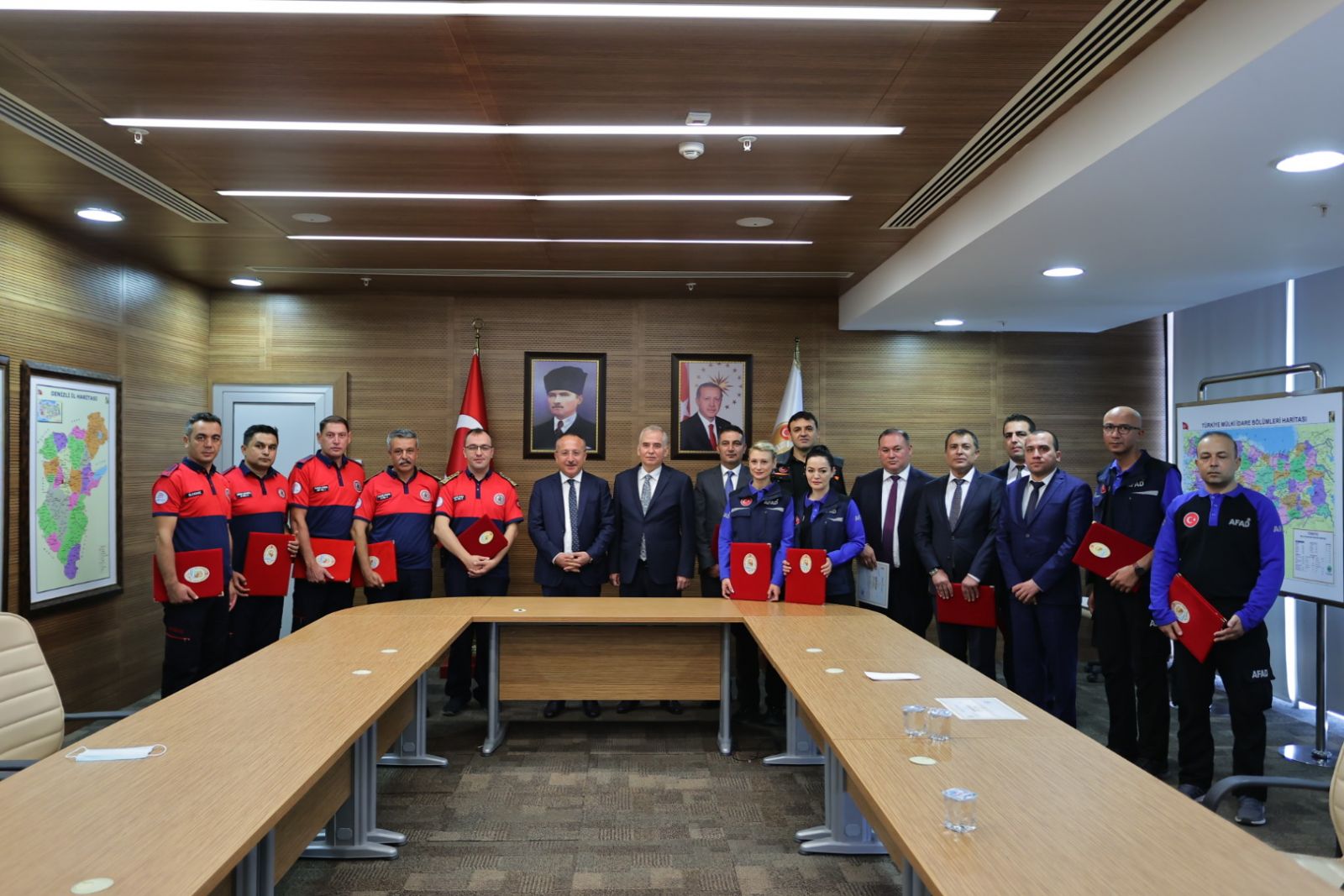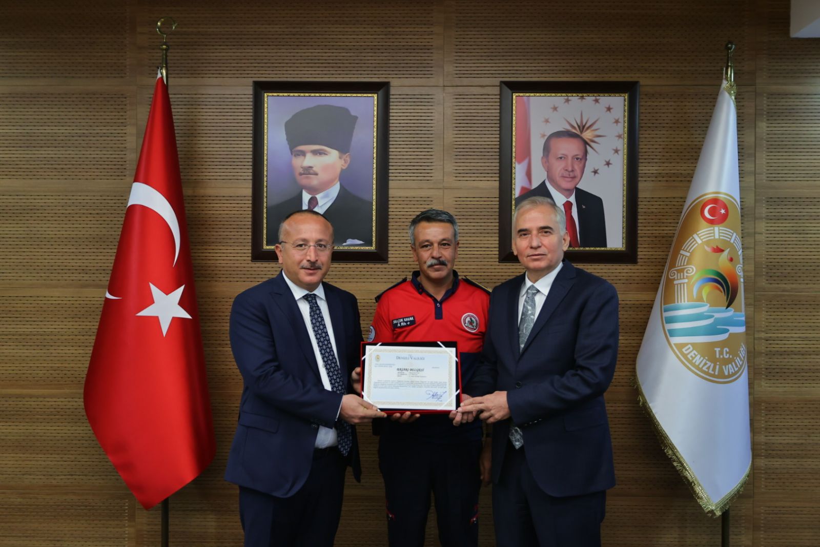Denizli ve çevre illerde, bir süre önce yoğun şekilde yaşanan orman yangınlarına karşı başarılı bir şekilde mücadele eden Denizli Büyükşehir Belediyesi, Orman Bölge Müdürlüğü ve AFAD Denizli İl Müdürlüğü ekipleri teşekkür belgesi ile ödüllendirildi. Denizli Valiliği’nde gerçekleştirilen programa, Denizli Valisi Ali Fuat Atik, Denizli Büyükşehir Belediye Başkanı Osman Zolan, Büyükşehir Belediyesi İtfaiye Dairesi Başkanı Murat Başlı, Orman Bölge Müdürü Erhan Çetinkaya ve AFAD Denizli İl Müdürü Ali Etiz ve beraberindekiler katıldı.