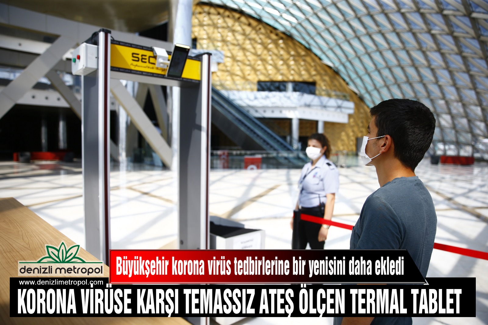 Çin'in Wuhan kentinden başlayarak tüm dünyaya yayılan korona virüse (Kovid-19) karşı ilk günden bu yana aldığı önlemlerle başarılı çalışmalar gerçekleştiren Denizli Büyükşehir Belediyesi tedbirlerine bir yenisini daha ekledi. Bu kapsamda vatandaşlar tarafından yoğun olarak kullanılan Büyükşehir Belediyesinin bazı tesis girişlerine termal tabletler yerleştirilmeye başlandı. İlk olarak Denizli Büyükşehir Belediyesi Hizmet Binası ana girişi, Büyükşehir Belediyesi Şehirlerarası Otobüs Terminali ana girişi ile üst girişi ve Büyükşehir Belediyesi Nihat Zeybekci Kongre Kültür Merkezi'nin ana girişi ile nikah salonu girişine maske tanıma ve ateş kontrolü yapan termal tabletler yerleştirildi.
