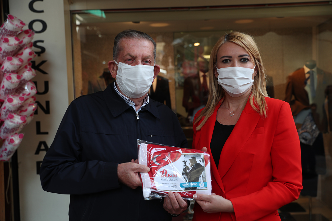 İş yeri çalışanları Başkan Doğan’a teşekkür ederek aldıkları Türk Bayraklarını dükkânlarına astı. Merkezefendi Belediye Başkanı Şeniz Doğan’a Merkezefendi Belediye Başkan Yardımcıları Fatma Atıcı Bakcan, Necdet Yılmaz ve Fatih Coşkun da eşlik etti.