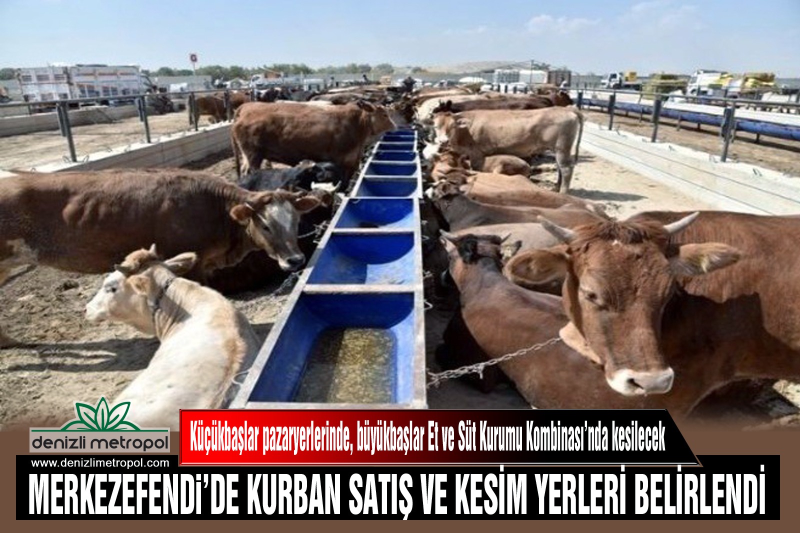 Denizli'nin Merkezefendi İlçesinde Kurban Bayramı hazırlıkları kapsamında kurbanlık hayvan satış ve kesim yerleri belirlendi. Küçükbaşlar pazaryerlerinde, büyükbaşlar Et ve Süt Kurumu Kombinası'nda kesilecek.