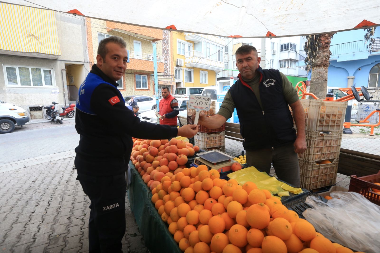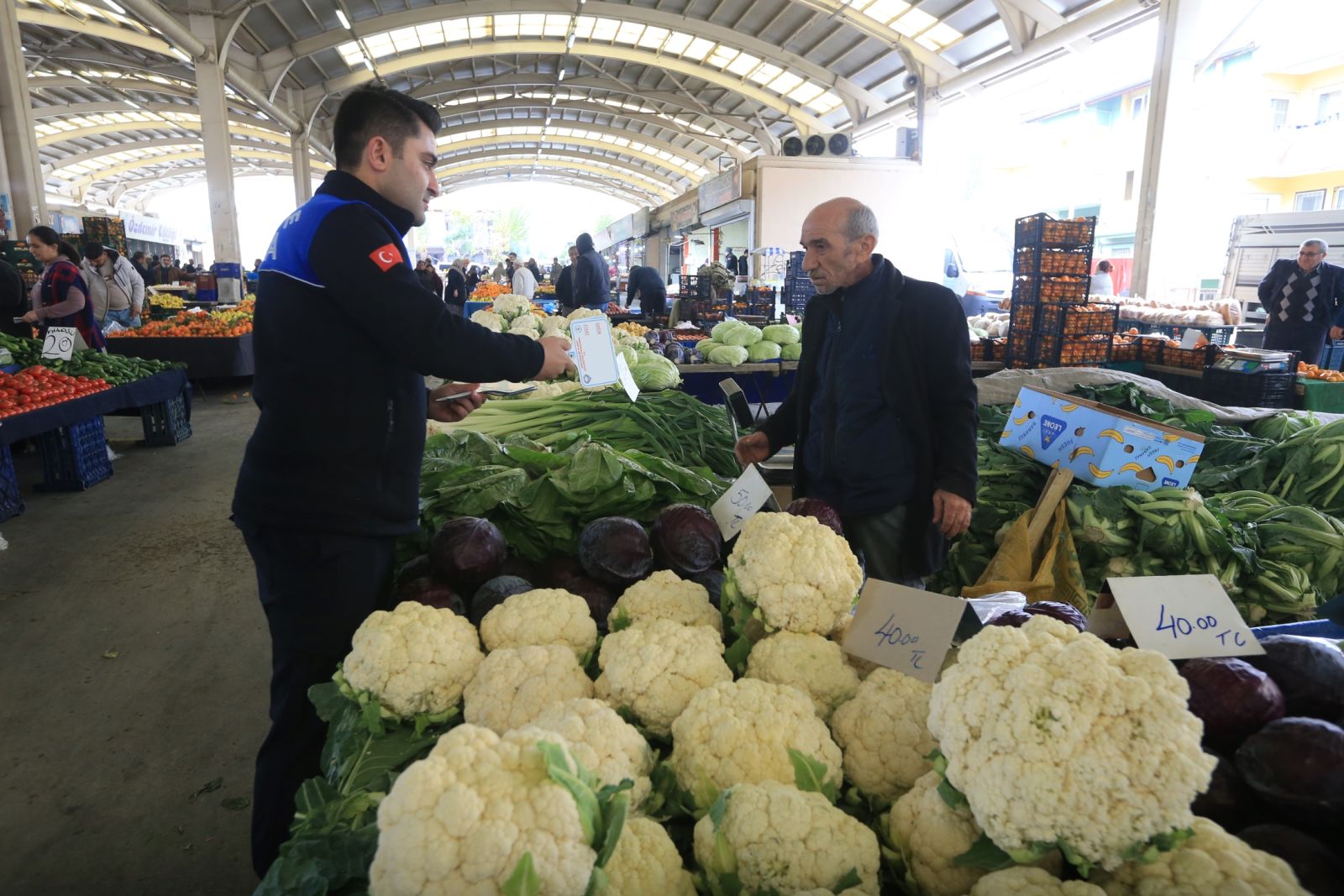 yerlerindeki tüm tezgâhları tek tek gezerek pazarcı esnafına ürün fiyatlarının net bir şekilde