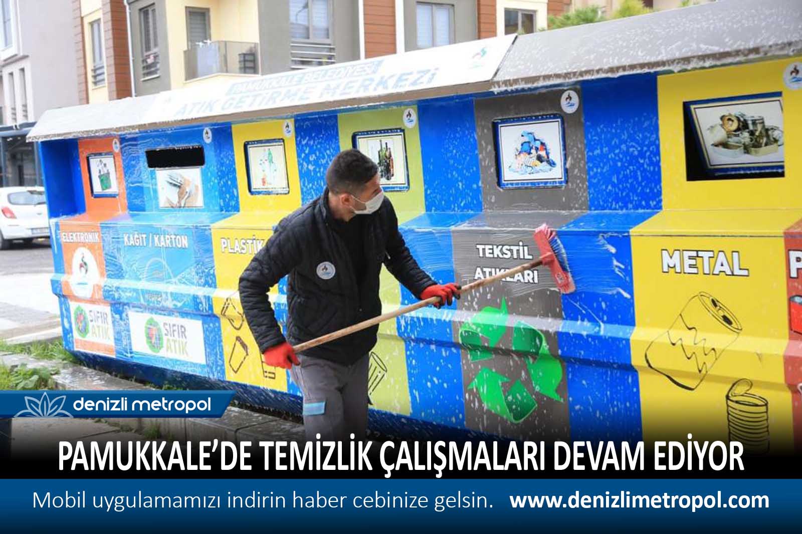 Pamukkale Belediyesi, “Daha temiz bir Pamukkale için” sloganıyla ilçede temizlik çalışmalarını yoğun mesai harcayarak sürdürüyor. Pamukkale Belediyesi Temizlik İşleri Müdürlüğü, daha temiz bir çevre için, katı atık toplama, cadde ve sokak süpürme, pazar yerlerinin temizliği, ambalaj atıklarının toplanması, bitkisel atık yağların toplanması, çöp ev temizliği, yol kenarı ve boş arsalarda ot biçme hizmeti ve bu gibi birçok hizmeti yerine getiriyor. Bunun yanında bayat ekmek kutuları, çöp konteynerleri ve atık toplama merkezlerini de düzenli olarak temizliyor. Uzman personel kadrosu ve dev filosu ile yoğun bir şekilde çalışan temizlik ekipleri, vatandaşlardan gelen istek ve taleplere de hızlıca cevap veriyor.