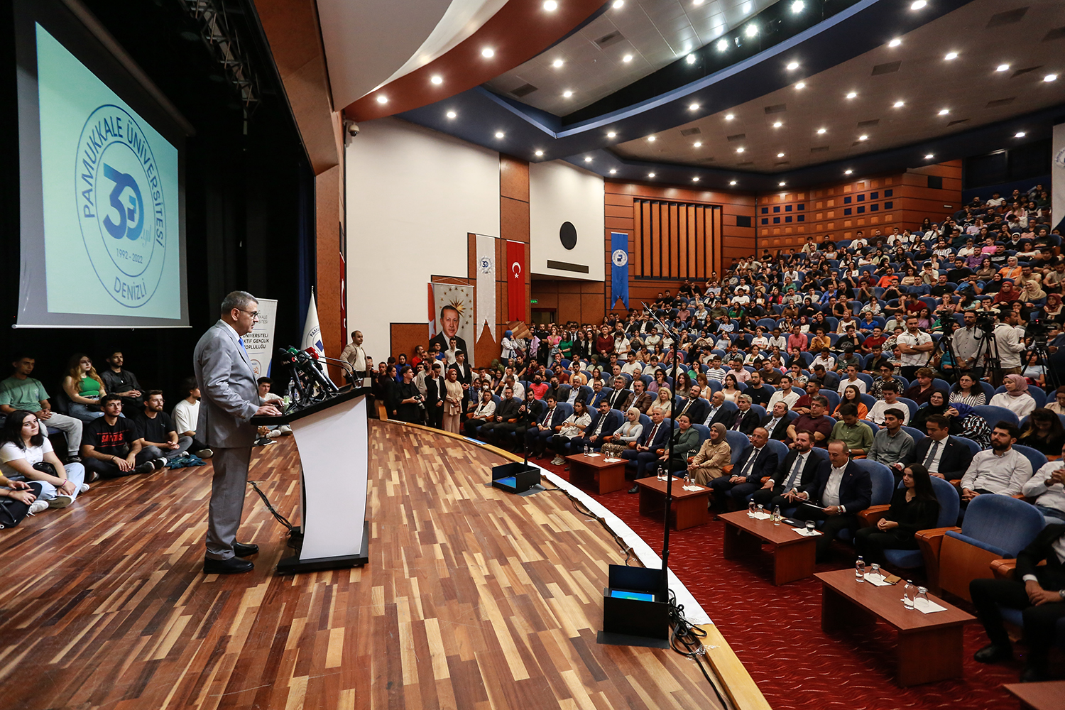 Rektör Prof. Dr. Ahmet Kutluhan konuşmasında şunları kaydetti: “Sayın Bakanımız, dış politikamızdaki yoğun gelişmelere rağmen Pamukkale Üniversitesine gelmeniz bizlerle, öğrencilerimiz ile burada beraber olmanız bizleri çok mutlu etmiştir. Gördüğünüz gibi Üniversitemiz sizi aşkla beklediğini salondaki bu kalabalık ile gösteriyor. En önemlisi bu hafta Üniversitemizin kuruluşunun 30. yılı münasebeti ile düzenlediğimiz 30 yıl 30 Tema Etkinlikleri ile kutluyor olmamız. Sayın Bakanımızı Üniversitemizde ağırlıyor olmak ise bizim için temaların en büyüğü oldu. Bakanımıza tekrar hoş geldiniz diyor, teşekkürlerimi sunuyorum.”