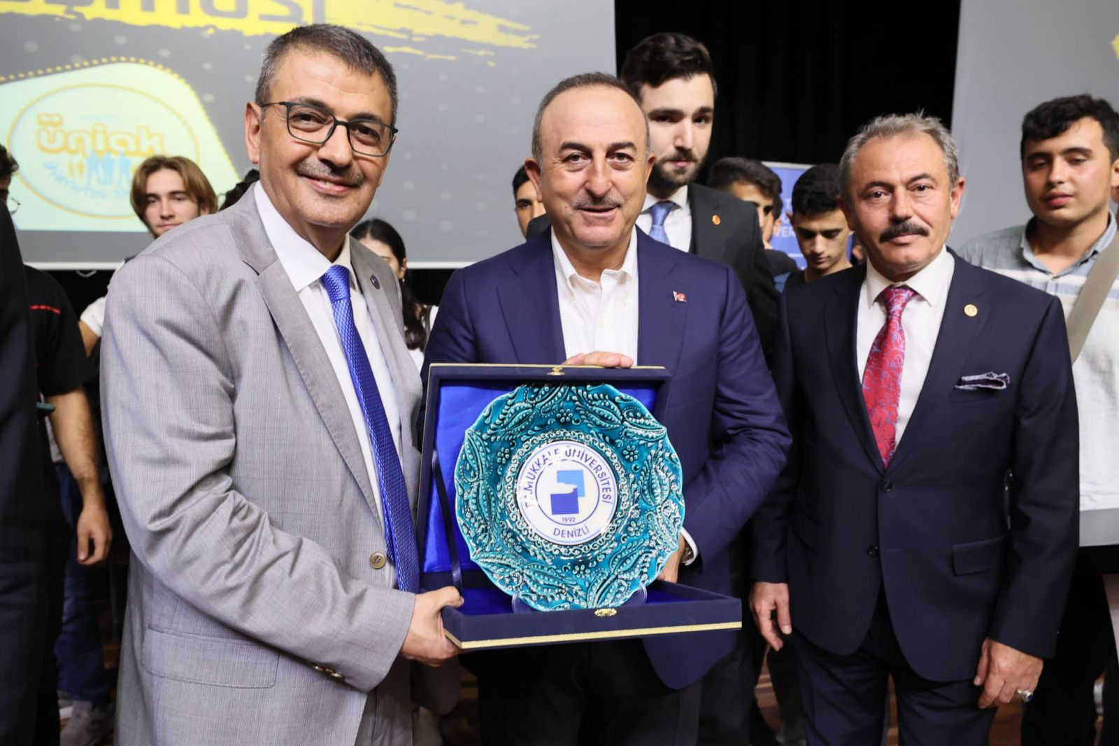 Konuşmasının devamında her yıl aydınları, siyasetçileri, gazetecileri, öğrencileri bir araya getiren Antalya Diplomasi Forumunun ikinci yılında bir dünya markası haline geldiğini ifade eden Bakan Çavuşoğlu şunları ifade etti: “Antalya Diplomasi Forumuna Pamukkale Üniversitesinden arkadaşlarımız da katıldılar. Seneye inşallah 8-30 Nisan tarihlerinde öğrencilerimizi bekliyoruz. Öğrencilerimize önem veriyoruz, sadece gelip dinlemeleri için değil, onlara görevler de veriyoruz. Yabancı heyetlere eşlik ediyorlar, onlarla sohbet ediyorlar, panelleri dinliyorlar, dolayısıyla güzel sorular da soruyorlar. İki yıl içindeki dünyadaki en önemli, en saygın platformlardan bir tanesi haline geldi. Her sene üniversite öğrencilerimize Bakanlığımda staj imkânı tanıyoruz. Cumhurbaşkanlığına başvuruluyor, bizim bakanlığı talep edenler oradan gönderiliyor. Tabi tamamen mümkün değil, geçen yıl 10 bin başvuru olmuş ve buradan bize gelen arkadaşlarımızla da ben tüm gruplarla oturdum sohbet ettim. Yemek yediğimiz gruplar da oldu. AB Başkanlığımız, Ulusal Ajansımızın biliyorsunuz Erasmus programları var. Yurtdışına öğrenci gönderiyoruz, eğitim imkânlarından faydalandırmaya inşallah devam edeceğiz. Bugünkü hizmetlerimizin sizlerin geleceği olduğunu biliyoruz.”