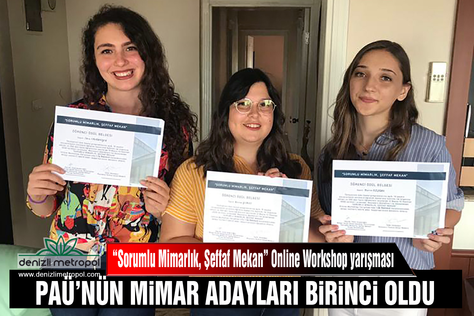 Pamukkale Üniversitesi (PAÜ) Mimarlık ve Tasarım Fakültesi Mimarlık Bölümü son sınıf öğrencileri: gençlerin yaratıcı fikirleri ve yüksek motivasyonu ile sosyal sorumluluk kavramına katkı sunmaları, şeffaf mekânlar üzerine özgürce fikir üretip, tasarım yapmaları amacıyla düzenlenen “Sorumlu Mimarlık, Şeffaf Mekan” Online Workshop yarışmasında birincilik ödülü aldı.