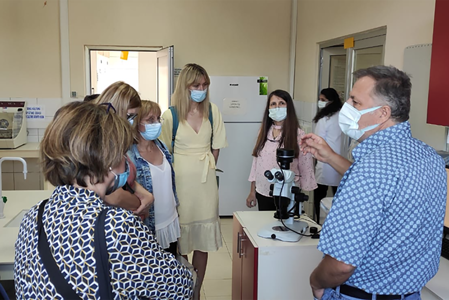 PAÜ BİYOM’da uluslararası ve ulusal projeler yürütmekte olan Prof. Dr. Fevziye Çelebi Toprak, Prof. Dr. Ali Ramazan Alan ve ekibi; laboratuvar, sera ve uygulama arazisinde devam etmekte olan projeler hakkında ziyaretçi bilim insanlarına bilgiler verdiler. Prof. Dr. Fevziye Çelebi Toprak ve Prof. Dr. Ali Ramazan Alan, bilim insanlarına PAÜ BİYOM’da yürütülmekte olan projelerin Türkiye için ekonomik ve kültürel öneme sahip bitki türlerinin gelecek nesiller için koruma altına nasıl alınacağı, araştırmacıların gerçekleştirmekte olduğu projelerin ülkemiz çiftçilerinin ihtiyacı olan tohumluk üretiminde yurtdışına bağımlılığın azaltılmasında nasıl katkılar sağlayacağı, ekonomik öneme sahip bitki türlerinin hastalıklardan arındırma işlemlerinin yapılması ve bu sağlıklı materyallerin bitkisel üretime yapacağı katkılar, genetik kaynakların nasıl saklanması gerektiği, yerli ve milli tohumların ülkemiz ekonomisi için ne kadar önemli olduğu konularında bilgiler verdi.