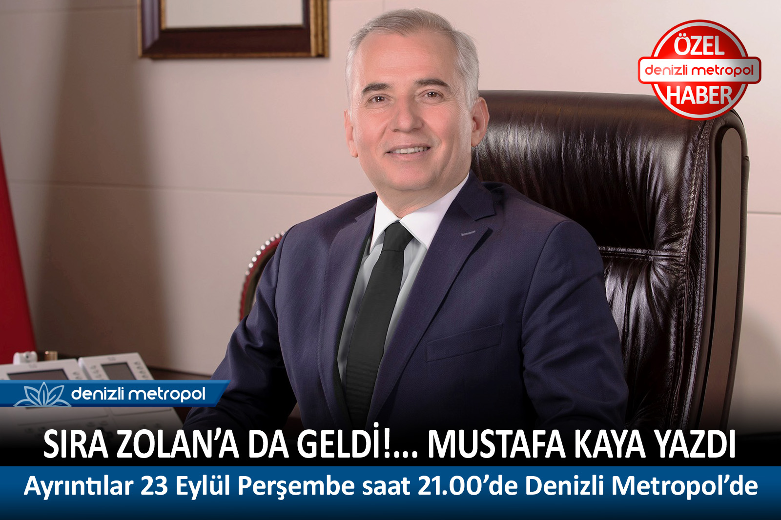 Denizli Metropol Köşe Yazarı Mustafa Kaya yazdı… “Sıra Zolan’a da geldi!” 23 Eylül Perşembe günü saat 21.00’de Denizli Metropol'de..
