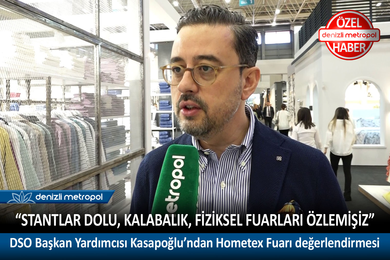 Denizli’den 83 firmanın katıldığı ve ev tekstili sektörünün önemli fuarı Hometex Ev Tekstili ve Aksesuarları Fuarı’nda Denizli Metropol’e konuşan Denizli Sanayi Odası Başkan Yardımcısı Selim Kasapoğlu “Stantlar dolu, çok kalabalık. Pandemi sonrası fuarlarda büyük hareketlilik var. İnsanlar fiziksel fuarları özlemiş. Sanal fuarlar fiziksel fuarların yerini tutmuyor” dedi.