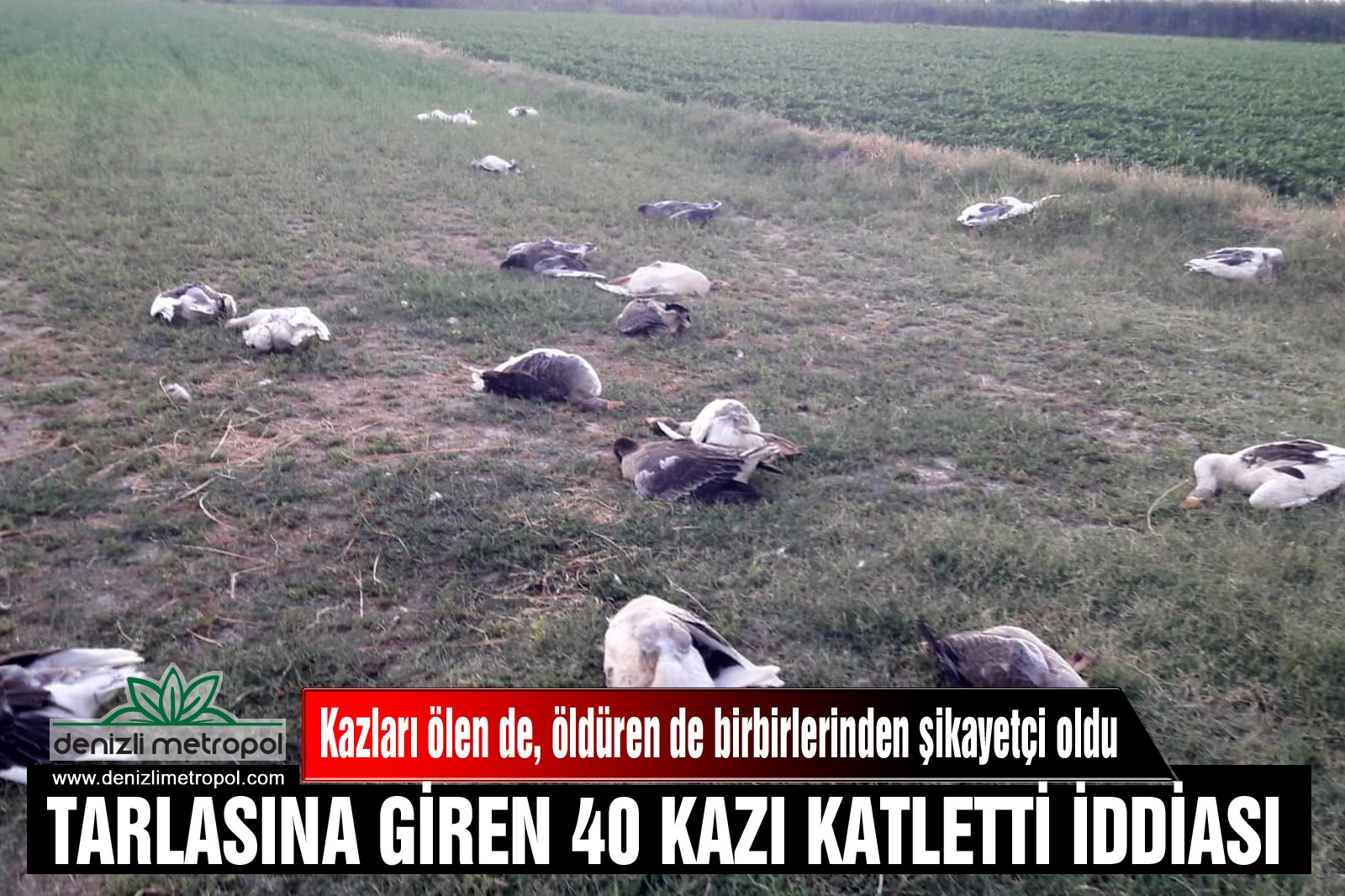 Denizli'nin Sarayköy ilçesi Turan Mahallesi'nde yaşayan kaportacı Süleyman Demir (41), evinin bahçesinde beslediği 40 kazın komşusu olan CHP Sarayköy İlçe Başkanı Mehmet Salih Konya'nın babası Mustafa Konya'ya (64) ait pamuk ve yonca ekili tarlada av tüfeğiyle öldürüldüğünü görünce polis giderek şikayetçi oldu. Polis ekiplerinin yaptığı incelemede, kazların tarla sahibi Mustafa Konya tarafından öldürüldüğü belirlendi. Hayvanlarından bir kısmını da yaralı bulduğunu kaydeden Demir, Sarayköy İlçe Emniyet Müdürlüğüne giderek Konya'dan şikayetçi oldu.