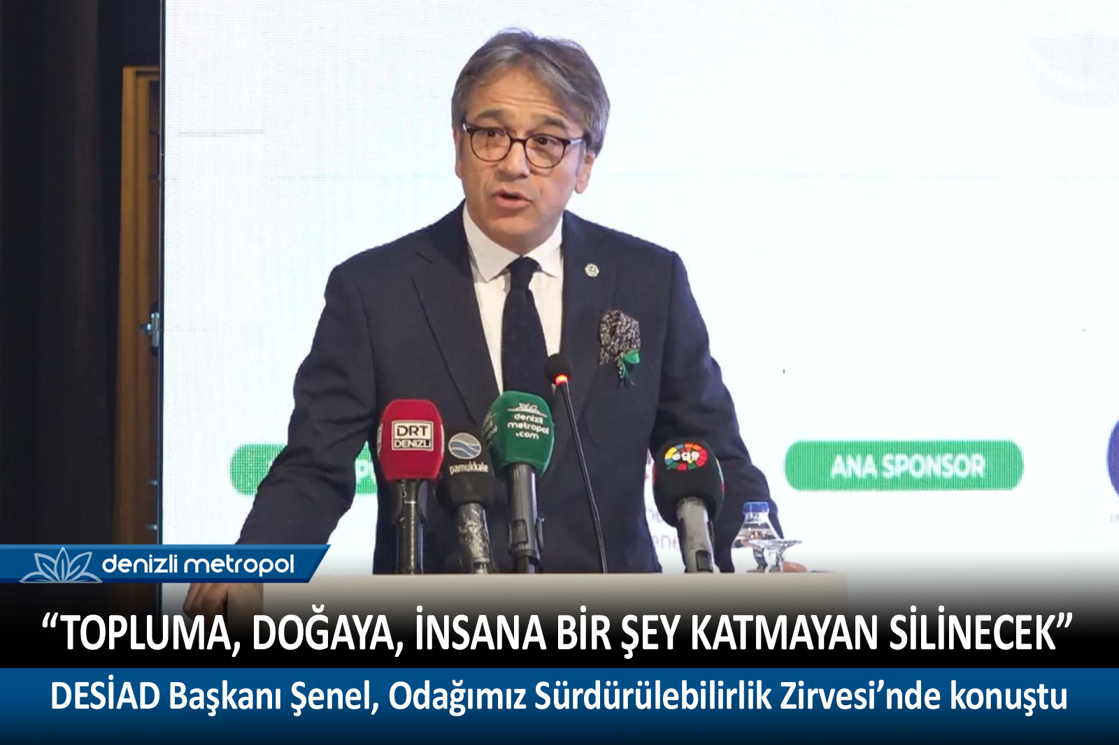 Denizli Sanayici ve İş İnsanları Derneği ve KalDer İzmir Şubesi ile ortaklaşa düzenlenen Odağımız Sürdürülebilirlik Zirvesi’nde konuşan DESİAD Başkanı İbrahim Şenel “Bugün bir şirketin değerinden söz ederken, topluma, doğaya, insana, ne kattığını önümüze koymadan bir değerlendirme yapma şansımız yok. Bunları önüne koymayan şirketlerinde belki de orta vadede silinmekten başka bir kaderi yok” dedi.